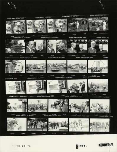 | Keywords: Ford B1999 NLGRF photo contact sheet (1976-10-24)(Gerald Ford Library).jpg White House Photographic Office WHPO is housed at the Gerald R Ford Presidential Library a branch of the National Archives and Records Administration NARA <br/><br/> This file is a 200 dpi photo contact sheet having images from roll of film B1999 of the August 9 1974 - January 20 1977 Gerald R Ford White House Photographic Office Series A0001-A9999 and B0001-B2886 photographs <br/><br/> The date on the photo contact sheet is the date the roll of film was processed not necessarily the date the photographs were taken See table below for additional details 1976-10-24 Gerald R Ford Presidential Library Image http //www fordlibrarymuseum gov/library/whphotos/B1999_NLGRF jpg B1999_NLGRF jpg from http //www fordlibrarymuseum gov/library/whphotos/19761024whpo pdf White House Photographs October 24 1976 of the http //www fordlibrarymuseum gov/Library/whphotos/whpo asp White House Photographic Collection page White House Photographic Office WHPO <br/> Creator David Hume Kennerly PD-USGov Institution Institution Gerald R Ford Presidential Library Table wikitable sortable + Photo contact sheet B1999 U S President Ford Administration Gerald R Ford Library Frame s Tone Subject proper Subject generic Names Geographic Location Photographer Date - 2A-7A BW Campaign Trip to California; Tour of San Gabriel Mission Church - San Gabriel California talking walking through gardens GRF Father Leo Mattecheck Father Bernard O'Connor San Gabriel CA San Gabriel Mission Church Kennerly 1976-10-24 - 8A-11A BW Campaign Trip to California; Tour of San Gabriel Mission Church - San Gabriel California standing talking laughing GRF Unidentified Priest San Gabriel CA San Gabriel Mission Church Kennerly 1976-10-24 - 12A BW Campaign Trip to California; Following Tour of San Gabriel Mission Church -San Gabriel California GRF standing in limousine waving; mission in background GRF Secret Service San Gabriel CA San Gabriel Mission Church - Outside Kennerly 1976-10-24 - 13A-19A BW Campaign Trip to California; Arrival for Campaign Rally in Fountain Valley -Fountain Valley California GRF standing waving in limousine in background; secret service car in foreground; fire engine on right; going under large flag; various distances GRF Secret Service Firemen Others Fountain Valley CA Street Kennerly 1976-10-24 - 20A BW Campaign Trip to California; Arrival for Campaign Rally in Fountain Valley -Fountain Valley California greeting handshaking; all not in frame GRF Don Sutton Steve Garvey Platform Guests Fountain Valley CA Fountain Valley Recreation Center Kennerly 1976-10-24 - 21A-23A BW Campaign Trip to California; Campaign Rally in Fountain Valley - Fountain Valley California GRF at lectern speaking others seated; various angles and distances; all not in every frame GRF Platform Guests Fountain Valley CA Fountain Valley Recreation Center Kennerly 1976-10-24 - 24A BW Campaign Trip to California; Campaign Rally in Fountain Valley - Fountain Valley California GRF back to camera in foreground; girl in cowboy hat seated on person's shoulders GRF Crowd Fountain Valley CA Fountain Valley Recreation Center Kennerly 1976-10-24 - 25A BW Campaign Trip to California; Campaign Rally in Fountain Valley; Actor - Fountain Valley California GRF pointing smiling; close up GRF Secret Service Fountain Valley CA Fountain Valley Recreation Center Kennerly 1976-10-24 - 26A-27A BW Campaign Trip to California; Following Campaign Rally in Fountain Valley; Actor - Fountain Valley California GRF seated on limousine roof speaking holding microphone; Wayne standing up through sun roof; hot air balloon in background; close ups GRF John Wayne; Crowd Fountain Valley CA Fountain Valley Recreation Center Kennerly 1976-10-24 - 28A-31A BW Campaign Trip to California; Motorcade in Fountain Valley - Fountain Valley California watching motorcade; all not in every frame Crowd Fountain Valley CA Street Kennerly 1976-10-24 Gerald R Ford Presidential Library and Museum-cooperation PD-USGov Contact sheets by the Ford White House October 1976 Photographs by David Hume Kennerly from 1976 |