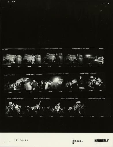 | Keywords: Ford B2000 NLGRF photo contact sheet (1976-10-24)(Gerald Ford Library).jpg White House Photographic Office WHPO is housed at the Gerald R Ford Presidential Library a branch of the National Archives and Records Administration NARA <br/><br/> This file is a 200 dpi photo contact sheet having images from roll of film B2000 of the August 9 1974 - January 20 1977 Gerald R Ford White House Photographic Office Series A0001-A9999 and B0001-B2886 photographs <br/><br/> The date on the photo contact sheet is the date the roll of film was processed not necessarily the date the photographs were taken See table below for additional details 1976-10-24 Gerald R Ford Presidential Library Image http //www fordlibrarymuseum gov/library/whphotos/B2000_NLGRF jpg B2000_NLGRF jpg from http //www fordlibrarymuseum gov/library/whphotos/19761024whpo pdf White House Photographs October 24 1976 of the http //www fordlibrarymuseum gov/Library/whphotos/whpo asp White House Photographic Collection page White House Photographic Office WHPO <br/> Creator David Hume Kennerly PD-USGov Institution Institution Gerald R Ford Presidential Library Table wikitable sortable + Photo contact sheet B2000 U S President Ford Administration Gerald R Ford Library Frame s Tone Subject proper Subject generic Names Geographic Location Photographer Date - 4A-7A BW Campaign Trip to California; Rally at the Grossmont Shopping Center - La Mesa California GRF and chicken standing near lectern GRF Platform Guests San Diego Chicken La Mesa CA Grossmont Shopping Center -Broadway Department Store Kennerly 1976-10-24 - 8A-9A BW Campaign Trip to California; Rally at the Grossmont Shopping Center - La Mesa California GRF at lectern speaking; varoius angles and distances from left of platform GRF Platform Guests Crowd La Mesa CA Grossmont Shopping Center -Broadway Department Store Kennerly 1976-10-24 - 10A-17A BW Campaign Trip to California; Following Rally at the Grossmont Shopping Center - La Mesa California greeting handshaking; various angles and distances; night shots GRF Crowd La Mesa CA Grossmont Shopping Center Kennerly 1976-10-24 Gerald R Ford Presidential Library and Museum-cooperation PD-USGov Contact sheets by the Ford White House October 1976 Photographs by David Hume Kennerly from 1976 |