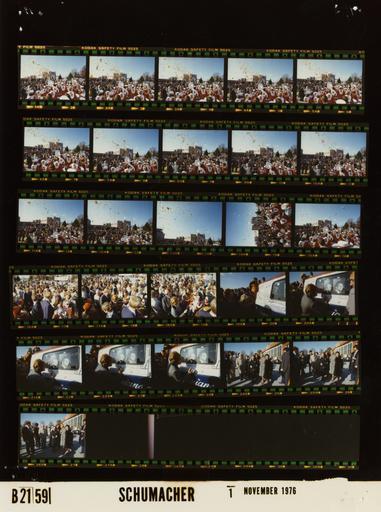 | Keywords: Ford B2159 NLGRF photo contact sheet (1976-11-01)(Gerald Ford Library).jpg White House Photographic Office WHPO is housed at the Gerald R Ford Presidential Library a branch of the National Archives and Records Administration NARA <br/><br/> This file is a 200 dpi photo contact sheet having images from roll of film B2159 of the August 9 1974 - January 20 1977 Gerald R Ford White House Photographic Office Series A0001-A9999 and B0001-B2886 photographs <br/><br/> The date on the photo contact sheet is the date the roll of film was processed not necessarily the date the photographs were taken See table below for additional details 1976-11-01 Gerald R Ford Presidential Library Image http //www fordlibrarymuseum gov/library/whphotos/B2159_NLGRF jpg B2159_NLGRF jpg from http //www fordlibrarymuseum gov/library/whphotos/19761101whpo pdf White House Photographs November 1 1976 of the http //www fordlibrarymuseum gov/Library/whphotos/whpo asp White House Photographic Collection page White House Photographic Office WHPO - Schumacher PD-USGov Institution Institution Gerald R Ford Presidential Library Table wikitable sortable + Photo contact sheet B2159 U S President Ford Administration Gerald R Ford Library Frame s Tone Subject proper Subject generic Names Geographic Location Photographer Date - 1A-15A Color Betty Ford Campaign Trip to Pennsylvania - PFC Rally Prior to Departure for Michigan BF Connors and others on platform; band in foreground large S on back red uniforms; terminal in background; balloons being released upward; long shots Betty Ford Chuck Connors Crowd Unidentified Marching Band Harrisburg PA Harrisburg Capitol City Airport Schumacher 1976-11-01 - 16A-18A Color Betty Ford Campaign Trip to Pennsylvania - PFC Rally Prior to Departure for Michigan greeting handshaking talking mingling; all not in every frame Betty Ford Crowd; Secret Service Harrisburg PA Harrisburg Capitol City Airport Schumacher 1976-11-01 - 19A-23A Color Betty Ford Campaign Trip to Pennsylvania - PFC Rally Prior to Departure for Michigan standing next to van covered with campaign signs and signatures; BF signing van in last four frames; back to camera Betty Ford Harrisburg PA Harrisburg Capitol City Airport Schumacher 1976-11-01 - 24A-26A Color Betty Ford Campaign Trip to Pennsylvania - Following PFC Rally Prior to Departure for Michigan standing posing in front of terminal Betty Ford' Others Harrisburg PA Harrisburg Capitol City Airport Schumacher 1976-11-01 Gerald R Ford Presidential Library and Museum-cooperation PD-USGov Contact sheets by the Ford White House November 1976 |