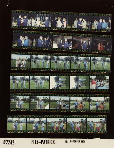 Keywords: Ford B2242 NLGRF photo contact sheet (1976-11-10)(Gerald Ford Library).jpg White House Photographic Office WHPO is housed at the Gerald R Ford Presidential Library a branch of the National Archives and Records Administration NARA <br/><br/> This file is a 200 dpi photo contact sheet having images from roll of film B2242 of the August 9 1974 - January 20 1977 Gerald R Ford White House Photographic Office Series A0001-A9999 and B0001-B2886 photographs <br/><br/> The date on the photo contact sheet is the date the roll of film was processed not necessarily the date the photographs were taken See table below for additional details 1976-11-10 Gerald R Ford Presidential Library Image http //www fordlibrarymuseum gov/library/whphotos/B2242_NLGRF jpg B2242_NLGRF jpg from http //www fordlibrarymuseum gov/library/whphotos/19761110whpo pdf White House Photographs November 10 1976 of the http //www fordlibrarymuseum gov/Library/whphotos/whpo asp White House Photographic Collection page White House Photographic Office WHPO - Fitz-Patrick PD-USGov Institution Institution Gerald R Ford Presidential Library Table wikitable sortable + Photo contact sheet B2242 U S President Ford Administration Gerald R Ford Library Frame s Tone Subject proper Subject generic Names Geographic Location Photographer Date - 4-7 Color Vacation Trip to Palm Springs California -Party at Home of Fred Wilson standing talking embarcing saying goodbye; all not in every frame GRF Betty Ford Others Palm Springs CA Fred Wilson Residence - Large Tent Fitz-Patrick 1976-11-10 - 8-9 Color Vacation Trip to Palm Springs California -Party at Home of Fred Wilson - Entertainer standing talking handshaking GRF Phil Harris Palm Springs CA Fred Wilson Residence - Large Tent Fitz-Patrick 1976-11-10 - 10 Color Vacation Trip to Palm Springs California -Party at Home of Fred Wilson standing talking handshaking GRF Unidentified Man Palm Springs CA Fred Wilson Residence - Large Tent Fitz-Patrick 1976-11-10 - 11-13 Color Vacation Trip to Palm Springs California -Party at Home of Fred Wilson standing talking handshaking; all not in both frame; stone fireplace in background GRF Others Palm Springs CA Fred Wilson Residence Fitz-Patrick 1976-11-10 - 14 Color Vacation Trip to California; Prior to Golf Outing at Eldorado Country Club -Indian Wells California standing talking; Susan's back to camera GRF Susan Ford Unidentified Woman Indian Wells CA Eldorado Country Club Fitz-Patrick 1976-11-11 - 15-22 Color Vacation Trip to California; Golf Outing at Eldorado Country Club - Indian Wells California standing talking posing; all may not be in frames GRF Bob Hope Dave Stockton Robert Bremson Indian Wells CA Eldorado Country Club Fitz-Patrick 1976-11-11 - 23 Color Vacation Trip to California; Golf Outing at Eldorado Country Club - Indian Wells California seated in golf cart GRF Bob Hope Indian Wells CA Eldorado Country Club Fitz-Patrick 1976-11-11 - 24-25 Color Vacation Trip to California; Golf Outing at Eldorado Country Club - Indian Wells California greeting handshaking GRF Unidentified Man Indian Wells CA Eldorado Country Club Fitz-Patrick 1976-11-11 - 26 Color Vacation Trip to California; Golf Outing at Eldorado Country Club - Indian Wells California standing posing in front of golf gart GRF Bob Hope Unidentified Man Indian Wells CA Eldorado Country Club Fitz-Patrick 1976-11-11 - 27-28 Color Vacation Trip to California; Golf Outing at Eldorado Country Club - Indian Wells California greeting handshaking GRF Unidentified Man Others Indian Wells CA Eldorado Country Club Fitz-Patrick 1976-11-11 - 29-30 Color Vacation Trip to California; Golf Outing at Eldorado Country Club; Professional Golfer - Indian Wells California standing talking; Susan has camera around neck GRF Susan Ford Dave Stockton Indian Wells CA Eldorado Country Club Fitz-Patrick 1976-11-11 - 31-33 Color Vacation Trip to California; Golf Outing at Eldorado Country Club - Indian Wells California standing talking laughing in tee box GRF Others Indian Wells CA Eldorado Country Club Fitz-Patrick 1976-11-11 Gerald R Ford Presidential Library and Museum-cooperation PD-USGov Contact sheets by the Ford White House November 1976 |