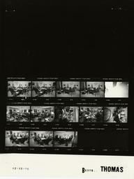 | Keywords: Ford B2373 NLGRF photo contact sheet (1976-11-30)(Gerald Ford Library).jpg White House Photographic Office WHPO is housed at the Gerald R Ford Presidential Library a branch of the National Archives and Records Administration NARA <br/><br/> This file is a 200 dpi photo contact sheet having images from roll of film B2373 of the August 9 1974 - January 20 1977 Gerald R Ford White House Photographic Office Series A0001-A9999 and B0001-B2886 photographs <br/><br/> The date on the photo contact sheet is the date the roll of film was processed not necessarily the date the photographs were taken See table below for additional details 1976-11-30 Gerald R Ford Presidential Library Image http //www fordlibrarymuseum gov/library/whphotos/B2373_NLGRF jpg B2373_NLGRF jpg from http //www fordlibrarymuseum gov/library/whphotos/19761130whpo pdf White House Photographs November 30 1976 of the http //www fordlibrarymuseum gov/Library/whphotos/whpo asp White House Photographic Collection page White House Photographic Office WHPO - Thomas PD-USGov Institution Institution Gerald R Ford Presidential Library Table wikitable sortable + Photo contact sheet B2373 U S President Ford Administration Gerald R Ford Library Frame s Tone Subject proper Subject generic Names Geographic Location Photographer Date - 3-6 BW Meeting with Under Secretary of the Treasury for Monetary Affairs seated around desk talking; various angles and distances GRF Cheney Scowcroft Greenspan Edward Yeo III Oval Office Thomas 1976-11-30 - 7 BW Thomas 1976-11-30 - 8-11 BW Meeting by Unidentified Group Crowded around table and chairs along wall; overhead projector and screen near fireplace; various angles and distances; all not in frames Unidentified Group Roosevelt Room Thomas 1976-12-02 - 12-15 BW Meeting with Chairman of the Commission on Executive Legislative and Judicial Salaries seated around desk; various angles and distances GRF Peter Peterson Oval Office Thomas 1976-12-02 Gerald R Ford Presidential Library and Museum-cooperation PD-USGov Contact sheets by the Ford White House November 1976 |