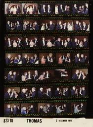 | Keywords: Ford B2378 NLGRF photo contact sheet (1976-12-03)(Gerald Ford Library).jpg White House Photographic Office WHPO is housed at the Gerald R Ford Presidential Library a branch of the National Archives and Records Administration NARA <br/><br/> This file is a 200 dpi photo contact sheet having images from roll of film B2378 of the August 9 1974 - January 20 1977 Gerald R Ford White House Photographic Office Series A0001-A9999 and B0001-B2886 photographs <br/><br/> The date on the photo contact sheet is the date the roll of film was processed not necessarily the date the photographs were taken See table below for additional details 1976-12-03 Gerald R Ford Presidential Library Image http //www fordlibrarymuseum gov/library/whphotos/B2378_NLGRF jpg B2378_NLGRF jpg from http //www fordlibrarymuseum gov/library/whphotos/19761203whpo pdf White House Photographs December 3 1976 of the http //www fordlibrarymuseum gov/Library/whphotos/whpo asp White House Photographic Collection page White House Photographic Office WHPO - Thomas PD-USGov Institution Institution Gerald R Ford Presidential Library Table wikitable sortable + Photo contact sheet B2378 U S President Ford Administration Gerald R Ford Library Frame s Tone Subject proper Subject generic Names Geographic Location Photographer Date - 3-4 Color Prior to Departure for 1976 National Symphony Orchestra Ball standing posing; formal wear GRF Betty Ford Military Aide Unidentified Woman Ground Floor Corridor Thomas 1976-12-03 - 5 Color 1976 National Symphony Orchestra Ball standing talking; formal wear GRF Unidentified Man Washington DC Sheraton Park Hotel - Grand Ballroom Thomas 1976-12-03 - 6-19 Color 1976 National Symphony Orchestra Ball standing talking; various angles and distances; only GRF in every frame; formal wear GRF Unidentified Men Women Washington DC Sheraton Park Hotel - Grand Ballroom Thomas 1976-12-03 - 20-21 Color 1976 National Symphony Orchestra Ball BF and woman in foreground talking; men in background; formal wear Betty Ford Unidentified Woman Two Unidentified Men Washington DC Sheraton Park Hotel - Grand Ballroom Thomas 1976-12-03 - 22-37 Color 1976 National Symphony Orchestra Ball standing talking; various angles and distances; only GRF in every frame; formal wear GRF Unidentified Men Women Washington DC Sheraton Park Hotel - Grand Ballroom Thomas 1976-12-03 Gerald R Ford Presidential Library and Museum-cooperation PD-USGov Contact sheets by the Ford White House December 1976 |