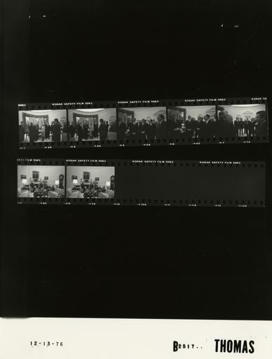 | Keywords: Ford B2517 NLGRF photo contact sheet (1976-12-14)(Gerald Ford Library).jpg White House Photographic Office WHPO is housed at the Gerald R Ford Presidential Library a branch of the National Archives and Records Administration NARA <br/><br/> This file is a 200 dpi photo contact sheet having images from roll of film B2517 of the August 9 1974 - January 20 1977 Gerald R Ford White House Photographic Office Series A0001-A9999 and B0001-B2886 photographs <br/><br/> The date on the photo contact sheet is the date the roll of film was processed not necessarily the date the photographs were taken See table below for additional details 1976-12-14 Gerald R Ford Presidential Library Image http //www fordlibrarymuseum gov/library/whphotos/B2517_NLGRF jpg B2517_NLGRF jpg from http //www fordlibrarymuseum gov/library/whphotos/19761214whpo pdf White House Photographs December 14 1976 of the http //www fordlibrarymuseum gov/Library/whphotos/whpo asp White House Photographic Collection page White House Photographic Office WHPO - Thomas PD-USGov Institution Institution Gerald R Ford Presidential Library Table wikitable sortable + Photo contact sheet B2517 U S President Ford Administration Gerald R Ford Library Frame s Tone Subject proper Subject generic Names Geographic Location Photographer Date - 3A-7A BW Presentation of Overseas Private Investment Corp OPIC D Award to Chairman of the Board of Standard Oil Company of Indiana greeting handshaking standing talking; various angles and distances; all not in every frame GRF; Mr Mrs John Swearingen A Kirchner J Weaver W Gaud D Parker M Mays D Gregg A Felder L Nielson R Jordan C Davis W Gorog Oval Office Thomas 1976-12-14 - 8A-9A BW Meeting with Ambassador of Saudi Arabia to the US seated talking near fireplace; long shots GRF Ali Abdallah Alireza Scowcroft Oval Office Thomas 1976-12-14 Gerald R Ford Presidential Library and Museum-cooperation PD-USGov Contact sheets by the Ford White House December 1976 |