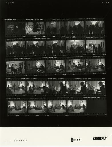 | Keywords: Ford B2763 NLGRF photo contact sheet (1977-01-12)(Gerald Ford Library).jpg White House Photographic Office WHPO is housed at the Gerald R Ford Presidential Library a branch of the National Archives and Records Administration NARA <br/><br/> This file is a 200 dpi photo contact sheet having images from roll of film B2763 of the August 9 1974 - January 20 1977 Gerald R Ford White House Photographic Office Series A0001-A9999 and B0001-B2886 photographs <br/><br/> The date on the photo contact sheet is the date the roll of film was processed not necessarily the date the photographs were taken See table below for additional details 1977-01-12 Gerald R Ford Presidential Library Image http //www fordlibrarymuseum gov/library/whphotos/B2763_NLGRF jpg B2763_NLGRF jpg from http //www fordlibrarymuseum gov/library/whphotos/19770112whpo pdf White House Photographs January 12 1977 of the http //www fordlibrarymuseum gov/Library/whphotos/whpo asp White House Photographic Collection page White House Photographic Office WHPO <br/> Creator David Hume Kennerly PD-USGov Institution Institution Gerald R Ford Presidential Library Table wikitable sortable + Photo contact sheet B2763 U S President Ford Administration Gerald R Ford Library Frame s Tone Subject proper Subject generic Names Geographic Location Photographer Date - 3 BW 1977 State of the Union Address GRF in background reciting speech; cameraman in foreground looking at image on monitor; taken over cameraman's left shoulder GRF Television Cameraman Others Washington DC US Capitol - US House of Representatives Kennerly 1977-01-12 - 4 BW Following 1977 State of the Union Address walking moving toward camera GRF William Miller Unidentified Man K Harding F Hoffman Washington DC United States Capitol -Hallway Kennerly 1977-01-12 - 5 BW Following 1977 State of the Union Address walking moving toward camera Betty Ford Others Washington DC United States Capitol -Hallway Kennerly 1977-01-12 - 6-10 BW Following 1977 State of the Union Address GRF and BF embracing kissing in foreground; others in background; all not in every frame GRF Betty Ford; Others Washington DC United States Capitol -Hallway Kennerly 1977-01-12 - 11 BW Return to White House Following 1977 State of the Union Address walking talking smiling; BF wearing fur coat Betty Ford Susan Ford GRF Cheney Ground Floor Corridor Kennerly 1977-01-12 - 12-13 BW Watching Television Reports Following 1977 State of the Union Address standing talking laughing; GRF coatless tieless; open collar shirt GRF Mike Ford Gayle Ford Second Floor - Center Hall Kennerly 1977-01-12 - 14-16 BW Watching Television Reports Following 1977 State of the Union Address GRF and Gayle seated on sofa Mike seated on side chair; GRF coatless tieless talking on telephone; open collar shirt; various angles and distances GRF Mike Ford Gayle Ford Second Floor - Second Floor - West Sitting Hall Kennerly 1977-01-12 - 17 BW Watching Television Reports Following 1977 State of the Union Address GRF and Gayle seated on sofa Mike seated on side chair; GRF coatless tieless talking on telephone; open collar shirt; BF walking into picture GRF Mike Ford Gayle Ford Betty Ford Second Floor - Second Floor - West Sitting Hall Kennerly 1977-01-12 - 18-19 BW Watching Television Reports Following 1977 State of the Union Address GRF and Gayle seated on sofa Mike seated on side chair; GRF coatless tieless talking on telephone; open collar shirt; BF and SF on left of frame; SF lighting smoking cigarette GRF Mike Ford Gayle Ford Betty Ford Susan Ford Second Floor - Second Floor - West Sitting Hall Kennerly 1977-01-12 - 20-22 BW Watching Television Reports Following 1977 State of the Union Address GRF and Gayle seated on sofa Mike seated on side chair; GRF coatless tieless talking on telephone handing phone to Mike in last frame; open collar shirt; close up Mike in foreground GRF Mike Ford Gayle Ford Second Floor - Second Floor - West Sitting Hall Kennerly 1977-01-12 - 23-26 BW Watching Television Reports Following 1977 State of the Union Address GRF BF and Gayle seated on sofa Mike and Susan seated on side chairs; GRF coatless tieless holding smoking pipe; various angles and distances GRF Mike Ford Gayle Ford Betty Ford Susan Ford Second Floor - Second Floor - West Sitting Hall Kennerly 1977-01-12 Gerald R Ford Presidential Library and Museum-cooperation PD-USGov Contact sheets by the Ford White House January 1977 Photographs by David Hume Kennerly from 1977 Fur garments Fur fashion in 1977 |