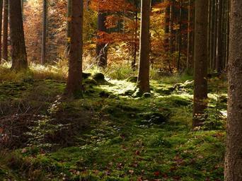 Keywords: forest autumn golden autumn fall foliage autumn forest trees moss overgrown light log