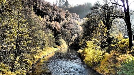 Keywords: forest autumn shadow trees fall foliage autumn forest back light