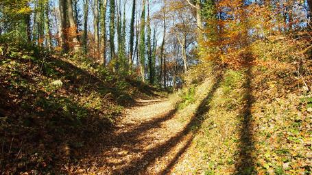 Keywords: forest autumn shadow trees fall foliage autumn forest back light