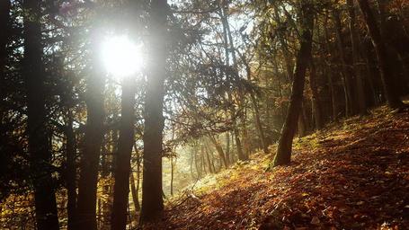 Keywords: forest autumn sun leaves flurry