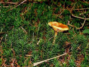 Keywords: forest floor mushroom moss screen fungus lamellar green mood