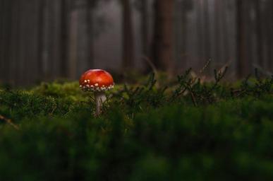 Keywords: forest fly agaric fog moss fliegenpilz red fly agaric mushroom toxic nature lucky guy autumn forest red macro autumn flash light points evening