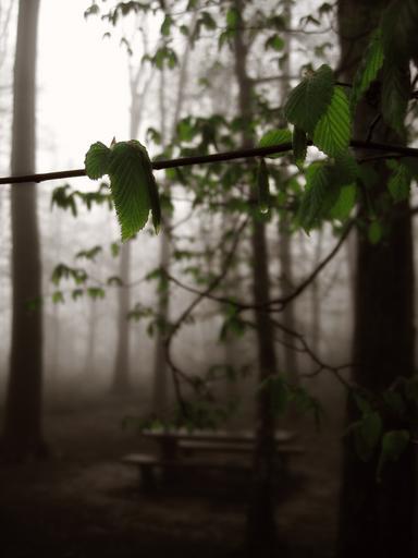 Keywords: forest fog tree glade bach bridge atmosphere weird backdrop black forest germany