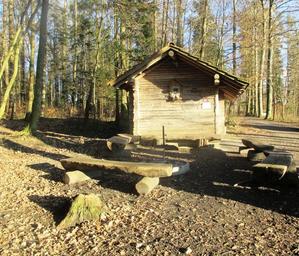 Keywords: forest forest house trees firs mood idyllic magic forest atmospheric barbecue area cozy mystical romance