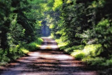 Keywords: forest forest path away green trees mood idyll light and shadow