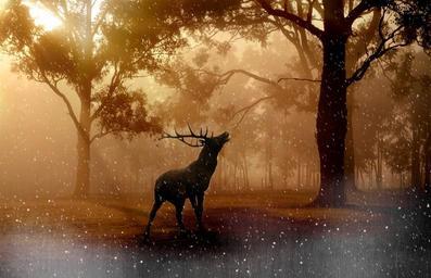 Keywords: forest hirsch wild sunset lighting snowflakes