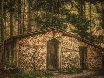 Keywords: forest hut log cabin wood old firewood