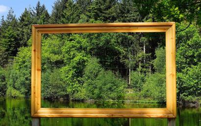 Keywords: forest lake nature landscape water mood firs idyllic forest shores wooden frame advertising climbing ropes