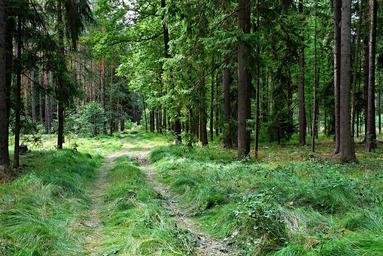 Keywords: forest mixed spruce branches path grass long clearing needles nature trees