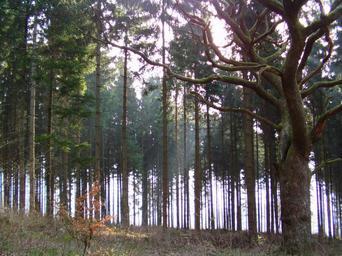Keywords: forest morning tree back light