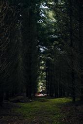 Keywords: forest moss green glade nature spring tree close light cone needles conifer