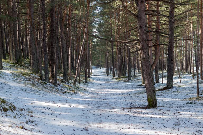 Keywords: pines conifer evergreen woods trees snow sunny spring forest jurmala latvia path road footpath trail track outdoor landscape tree plant pinetum Early spring in Jurmala forest, Latvia. Early spring in Jurmala forest, Latvia.