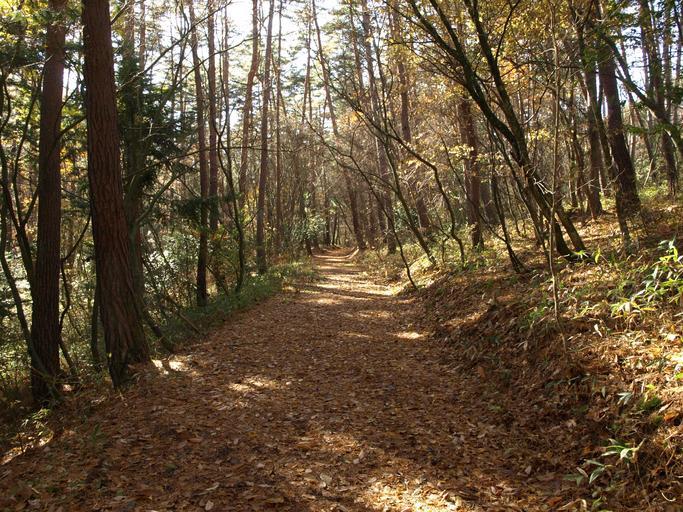 Keywords: forest road fallen leaves japan sunbeams