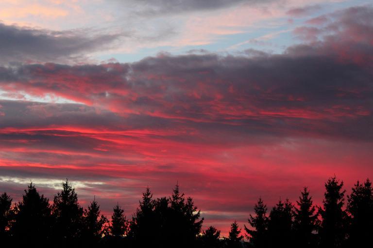 Keywords: forest silhouettes sunset afterglow evening sky abendstimmung sky