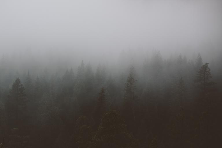Keywords: forest trees conifers fog mist murky hazy nature environment wood atmospheric mystic wilderness