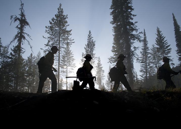 Keywords: forest trees firefighters silhouette silhouettes service smoke devastation workers defenders nature outside country countryside