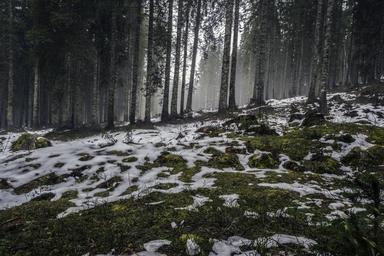 Keywords: forest winter cold freezing landscape nature trees trunks natural dark alone
