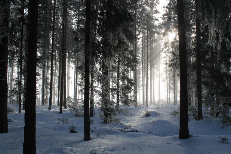 Keywords: forest woods trees woody trunks wooden sunlight winter snowy white lands grounds sunny park nature growing flora bright day sunrays illuminated natural lighting outdoor landscapes scenic scenery