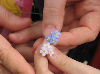 Keywords: forget-me-not flowers hands