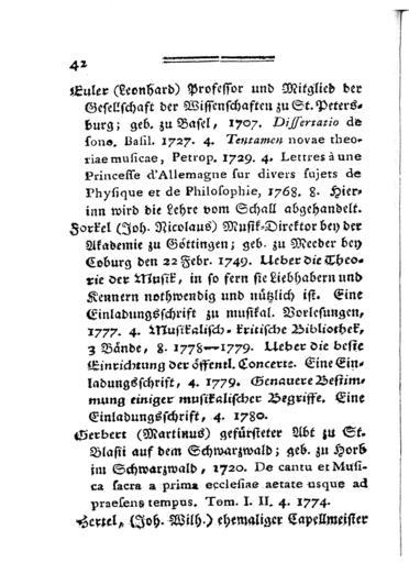 Keywords: Forkel Almanach 1782 Seite 042.jpg 041 043 Leonhard Euler Johann Nikolaus Forkel Martin Gerbert