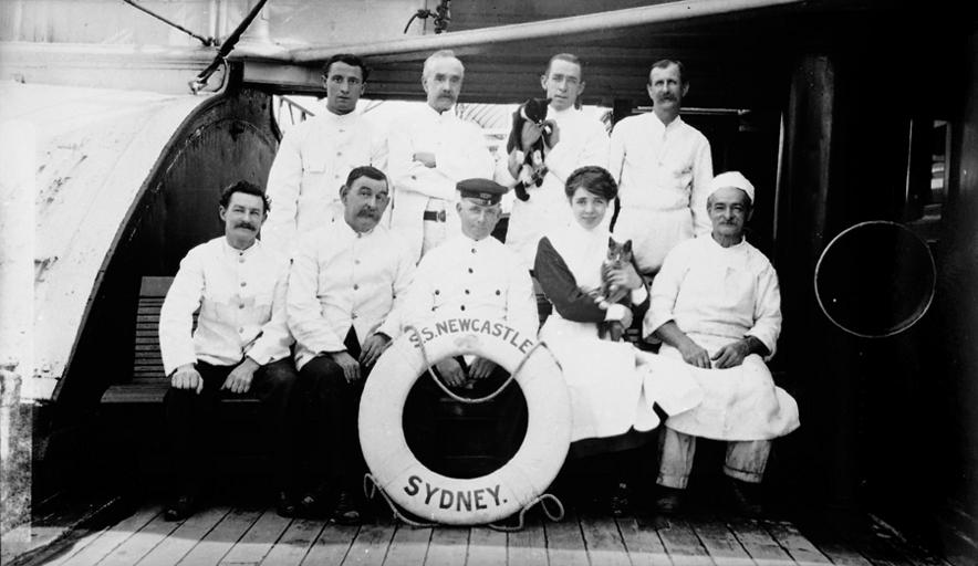 | Keywords: samuel j hood collection samueljhoodcollection samuel j hood studio collection samueljhoodstudiocollection cat kitten pets ship pets shippets hood sydney harbour sydneyharbour sydney pet s.s. ss newcastle blackandwhite monochrome black and white Between 1900 and the 1950s, Sydney photographer Sam Hood took hundreds of photographs of ships and their crew for souvenirs of their visit or to send home to families. The two cats appear to be important inclusions in this portrait of the catering crew of the paddle steamer NEWCASTLE. The ship did the overnight run between Sydney and Newcastle for 40 years. For more information see Patricia Miles' article Little Shipmates in Signals 82, 2008, pp 34-35. This photo is part of the Australian National Maritime Museum’s Samuel J. Hood Studio collection. Sam Hood (1872-1953) was a Sydney photographer with a passion for ships. His 60-year career spanned the romantic age of sail and two world wars. The photos in the collection were taken mainly in Sydney and Newcastle during the first half of the 20th century. The ANMM undertakes research and accepts public comments that enhance the information we hold about images in our collection. This record has been updated accordingly. Photographer: Samuel J. Hood Studio Collection. ANMM Collection 00023816. Between 1900 and the 1950s, Sydney photographer Sam Hood took hundreds of photographs of ships and their crew for souvenirs of their visit or to send home to families. The two cats appear to be important inclusions in this portrait of the catering crew of the paddle steamer NEWCASTLE. The ship did the overnight run between Sydney and Newcastle for 40 years. For more information see Patricia Miles' article Little Shipmates in Signals 82, 2008, pp 34-35. This photo is part of the Australian National Maritime Museum’s Samuel J. Hood Studio collection. Sam Hood (1872-1953) was a Sydney photographer with a passion for ships. His 60-year career spanned the romantic age of sail and two world wars. The photos in the collection were taken mainly in Sydney and Newcastle during the first half of the 20th century. The ANMM undertakes research and accepts public comments that enhance the information we hold about images in our collection. This record has been updated accordingly. Photographer: Samuel J. Hood Studio Collection. ANMM Collection 00023816. |
