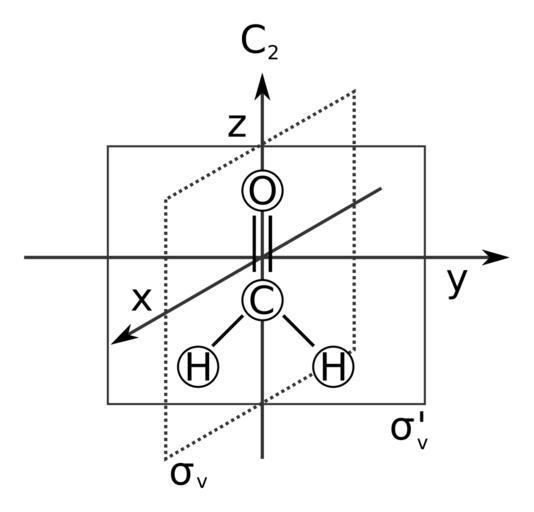 Keywords: Formaldehyde symmetry elements.svg Symmetry elements of Formaldehyde Symmetrieelemente von Formaldehyd als D Sümmetrieelemänt vo Formaldhyd own Andel 2012-03-08 Formaldehyde Molecular geometry Cc-zero