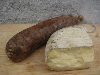 | Keywords: Formatge i sobrassada.jpg en Sobrassada and Maó cheese are gastronomical symbols of Minorque and in general of the Balearic Islands ca Una sobrassada de Menorca amb un formatge de Maó combinació típica i símbols de Menorca i de les Illes Balears own Slastic 2009 Cuisine of Menorca Cheese from the Balearic Islands Sobrassada |