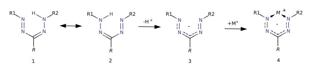 | Keywords: Formazan.Tautomerism.svg en Formazan tautomerism deprotonation and chelation ru Фо мазаны таутоме ия деп отони ование и хелати ование uk Фо мазани таутоме ия деп отонування та хелатування own Kurgus 2011-06-26 Cc-zero Formazans Tautomerism Chelating agents |