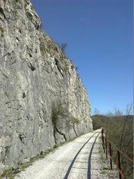 Keywords: former railway track italy path track hiking way footpath rail banister perspective