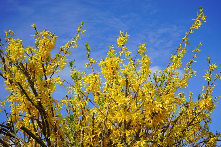 Keywords: forsythia aesthetic branches gold lilac flowers bush forsythia flowers yellow golden bells ornamental shrub plant spring bloom golden yellow stangenblueter olive crop oleaceae forsythia × intermedia