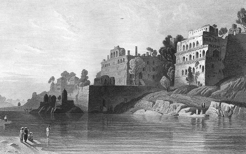 | Keywords: Fort at Baharampur, West Bengal, c 1850.jpg Fort at Berhampore West Bengal c 1850 http //cgi ebay com/India-KINGS-FORT-CITADEL-BERHAMPUR-Antique-Art-Print_W0QQitemZ280169216115QQihZ018QQcategoryZ360QQtcZphotoQQcmdZViewItem India KINGS FORT CITADEL BERHAMPUR - KING'S FORT - BOORHANPORE ~ 1850 Artist W Purser; Engraver W J Cooke PD-old-70-1923 From the Original Boorhanpoor formerly the capital of the province of Candeish is situated in lat 21° 16' N and long 76° 18' E on the north bank of the Taptee river which rises in the province of Gundwana and running westward nearly in a parallel line with the Nerbudda falls into the Gulf of Cambay at Surat This beautiful stream which is fordable during the dry season laves the walls of the picturesque ruins of the King's Fort whose time-worn bastions and dilapidated ramparts are mirrored on the tranqui surface of its shining waters Boorhanpoor when under Moslem rule was a large and flourishing city Being founded by a holy person of great repute it was early chosen as the residence of one of the most powerful chiefs established in the Deccan-Boorhan-ood-deen who is represented to have been one of those ambitious and daring impostors which Islamism has so often produced since the days of its founder This chief raised himself to great authority during his lifetime; and since his death has been esteemed as a saint His mausoleum at Rozah surpasses in splendour the imperial sepulchre of Aurungzebe; and far greater honours are paid to his memory Lamps are still kept burning over the venerated duat and his sarcophagus is canopied by a pall of green velvet-the sacred colour which indicates that those who are permitted to use it are either descendants of the prophet or have performed the pilgrimage to Mecca The precincts of the building are the abode of moollahs and other pious men who are in daily attendance at the tomb ; and upon great occasions large nobuts or drums which are kept in one of the ante-chambers for the purpose are beaten by the faithful to commemorate the merits of the deceased saint The King's Fort or Citadel of Boorhanpoor no longer formidable as a place of arms is picturesque in its decay Rising boldly from an elevated bank of the river it conveys to the spectator an idea of strength which a closer inspection does not warrant for its vast tenantless courts are cambered with huge fragments of ruins and rank vegetation has penetrated to its most secret recesses Still it is an interesting relic of Moslem grandeur fading before the relentless footsteps of Time; and the deserted chambers and ruined courts cannot be contemplated without a feeling of sadness The adjoining city is still comparatively populous and has been considered to be one of the largest and best built in the Deccan The greater number of the houses are of brick handsomely ornamented; and many of them are three storeys high there is also a large chowk or market-place and an extensive thoroughfare called the Raj Bazaar The remains of Mohammedan tombs and mosques in the neighbourhood show that Boorhanpoor under its original masters was an important place Its principal religious edifice the Jumma Musjid still bears substantial evidence of the wealth of its rulers and is a handsome building of grey marble crowned with lofty minarets The followers of Boorhan-ood-deen by whom this mosque as well as the fort was built are still very numerous among the resident population and constitute a peculiar sect known by the denomination of Bohrahs They are a noble-looking race and are distinguished from the rest of the inhabitants by a costume in which is blended that of the place and also of Arabia the supposed birthplace of the saint whose precepts they follow They are men of active habits and generally of great wealth acquired in mercantile pursuits The best houses in the city are occupied by the Bohrahs and they are celebrated all over India for their commercial probity and enterprise After the decline of the Mohammedan empire in Hindoostan Boorhanpoor and its adjacent territory fell into the hands of the Mahrattaa and these with the neighbouring fortress of Asseerghur styled the key of the Deccan were among the first trophies of the campaigns which under Lake Wellesley and others ultimately subdued the formidable power which had risen upon the ruin of the Mohammedan states and threatened to involve the whole of India in a cruel and devastating war Forts in West Bengal Historical images of West Bengal Brick buildings in India Baharampur 1850 in India |