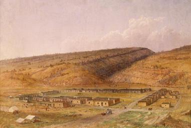 | Keywords: Fort defiance, arizona.jpg Fort Defiance New Mexico now Arizona by Seth Eastman Oil on canvas “ Sight measurement Height 21 63 inches 54 9 cm Width 31 5 inches 80 cm “ Signature lower left center S E / 1873 “ Cat no 33 00011 000 http //www senate gov/artandhistory/art/artifact/Painting_33_00011 htm senate gov gallery 1873 Seth Eastman 1808 “1875 PD-old Images transwikied by BetacommandBot Seth Eastman Fort Defiance Arizona | ||||
