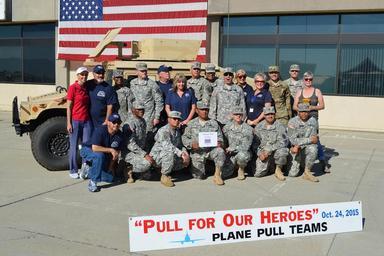 | Keywords: fort irwin fortirwin weed army community hospital weedarmycommunityhospital national training center nationaltrainingcenter wach ntc meddac col. jason wieman coljasonwieman csm jorge rodriguez csmjorgerodriguez united states army unitedstatesarmy soldiers uso ontario usoontario mojave troop support troopsupport resiliency center resiliencycenter army wellness center armywellnesscenter imcom health health benefits healthbenefits army triad armytriad preventive medicine preventivemedicine sport outdoor team sport ONTARIO, Calif. – Weed Army Community Hospital Soldiers (WACH) turned out for the Seventh Annual Pull for Our Heroes plane-pull competition October 23 at Ontario Airport Terminal Tarmac 1. The unusual plane-pull sporting event pits teams of 20 men and women against a 120,000 pound 727 plane. Competitors must quickly pull the plane 25 feet. The competition and event, which featured a live jazz band, speeches and exhibitor booths benefits the Bob Hope USO Ontario office located in Terminal 1 at Ontario International Airport. Personnel assigned to Fort Irwin in the Mojave desert as well as those assigned to the Marine Corps Logistic Base, Barstow, regularly fly into the Ontario Airport (though 180 miles from post, it is still the closest commercial airport available to Fort Irwin incoming personnel) and the USO office is a great assistance to traveling service members, family members and civilians on their way to the garrison. Photo courtesy of Kristen Ramirez, Bob Hope USO Ontario Airport (Released). To learn more about the people and facilities of the Weed Army Community Hospital and the National Training Center at Fort Irwin visit the new WACH website at www.irwin.amedd.army.mil For more information about the USO office at Ontario Airport visit www.bobhopeuso.org/our-locations/ontario-airport-uso.html ONTARIO, Calif. – Weed Army Community Hospital Soldiers (WACH) turned out for the Seventh Annual Pull for Our Heroes plane-pull competition October 23 at Ontario Airport Terminal Tarmac 1. The unusual plane-pull sporting event pits teams of 20 men and women against a 120,000 pound 727 plane. Competitors must quickly pull the plane 25 feet. The competition and event, which featured a live jazz band, speeches and exhibitor booths benefits the Bob Hope USO Ontario office located in Terminal 1 at Ontario International Airport. Personnel assigned to Fort Irwin in the Mojave desert as well as those assigned to the Marine Corps Logistic Base, Barstow, regularly fly into the Ontario Airport (though 180 miles from post, it is still the closest commercial airport available to Fort Irwin incoming personnel) and the USO office is a great assistance to traveling service members, family members and civilians on their way to the garrison. Photo courtesy of Kristen Ramirez, Bob Hope USO Ontario Airport (Released). To learn more about the people and facilities of the Weed Army Community Hospital and the National Training Center at Fort Irwin visit the new WACH website at www.irwin.amedd.army.mil For more information about the USO office at Ontario Airport visit www.bobhopeuso.org/our-locations/ontario-airport-uso.html |