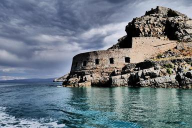 Keywords: fort island greece sea water cloudy clouds cloud cover ominous storm weather change spinalonga