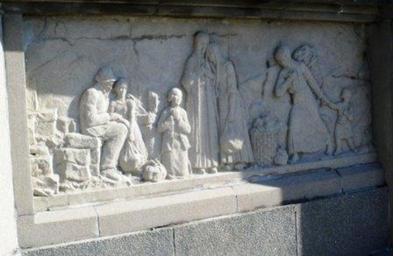 | Keywords: Fort Mahon -Relief showing life behind the front line.JPG en The relief on the Fort Mahon Plage monument aux morts showing life behind the front line This one of two reliefs carved by the sculptor Paul Ganuchaud The second relief shows soldiers at the front Thus the two reliefs are juxtaposed and show the two sides to the Great War Fort Mahon Plage is in the Somme region of France own WeglindeGordon Lawson War memorial of Fort-Mahon-Plage | ||||