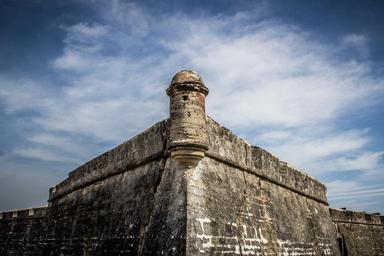 Keywords: fort stone historic architecture masonry sentry box bartizan guerite echauguette turret castillo de san marcos saint augustine florida usa defense military national monument clouds sky landmark