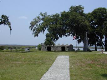 Keywords: FortFredericaNM1.jpg en Fort Frederica National Monument with Britsh flag Seen from the village of Frederica Georgia own Jan Kronsell 2002-07 Fort Frederica National Monument