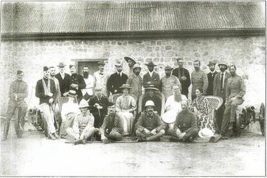 | Keywords: FortKumasi 1900 Besatzung B004b-2.jpg Inmates of the Fort at Kumasi The inmates of the British fort in Kumasi Ashanti during the Fifth Anglo-Ashanti War in 1900 <br /> The pictured persons sitting are the missionaries of the Basler Missionsgesellschaft from Switzerland which had sheltered in the fort from possible clashes The white-dressed man with beard sitting 2nd from right is the missionary Friedrich Ramseyer right beside him his wife The civilians are Europeans which was refuged in the fort too Remarkably is the small number of the British military persons and their degree of injury <br /> The British officer in the back row 6th person from left standing is Captain Cecil H Armitage the later Commissioner of the Gold Coast Northern Territories 1910-1920 For his participation on the 1900 campaign he was decorated with the D S O Distinguished Service Order C H Armitage A F Montanaro The Ashanti Campaign of 1900 London 1901 author <br/> derivative work by User MaxxL 1900 other versions <gallery> FortKumasi_1900_Besatzung_B004b jpg original FortKumasi_1900_Besatzung_B004b_retusche jpg digital picture enhancement - proposal by User Lämpel File FortKumasi 1900 Besatzung B004b retuschiert jpg digital picture enhancement - proposal by User MagentaGreen </gallery> PD-old Kumasi in 1900 Fifth Anglo-Ashanti War Basler Mission Cannons in Ghana Fort Kumasi Friedrich August Louis Ramseyer |