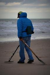 Keywords: fortune-hunter metal detector man people sea beach winter clothing search