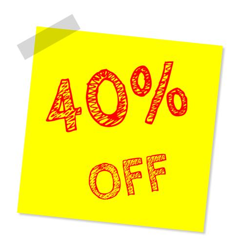 Keywords: forty percent off discount sale offer marketing percentage promotion reduction shopping rebate percent price clearance retail bargain
