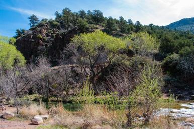 | Keywords: arizona coconino national forest coconinonationalforest flume trailhead flumetrailhead forest service forestservice fossil creek fossilcreek irving red rock ranger district redrockrangerdistrict tonto bench tontobench tonto national forest tontonationalforest usfs canyon creek forest outdoors riparian water camp verde campverde united states unitedstates outdoor tree plant Tonto Bench near old Irving power plant site on Fossil Creek. Fossil Creek seems to appear out of nowhere, gushing 20,000 gallons a minute out of a series of springs at the bottom of a 1,600 foot deep canyon. Over the years these calcium laden waters have laid down huge deposits of a type of limestone called travertine. That rock-like substance encases whatever happens to fall into the streambed, forming the fossils for which the area is named. Fossil Creek is one of two "Wild and Scenic" rivers in Arizona. This special designation was achieved when the Irving power plant was decommissioned, and removal of flume and dam on the creek allowed this magnificent creek to once again flow freely through Arizona's arid landscape. Most people come to Fossil Creek to sunbathe, wade, hike and birdwatch. It's also a great place to take photographs. The lushness of the riparian area strikes a sharp contrast to the brittle desert that surrounds it. Increasing popularity has led to the Coconino and Tonto National Forests to implement a parking permit reservation system in 2016. Reserved parking permits give visitors the peace of mind knowing they'll have a spot waiting for them in this remote location. Many visitors drive two or three hours to get to the creek. The final descent to the creek at the bottom of a canyon is on an extremely rough, rocky jeep road. Photo by Deborah Lee Soltesz, March 2, 2016. Credit: USFS Coconino National Forest. Learn more about visiting Fossil Creek, Fossil Springs Wilderness, and the Coconino National Forest. Tonto Bench near old Irving power plant site on Fossil Creek. Fossil Creek seems to appear out of nowhere, gushing 20,000 gallons a minute out of a series of springs at the bottom of a 1,600 foot deep canyon. Over the years these calcium laden waters have laid down huge deposits of a type of limestone called travertine. That rock-like substance encases whatever happens to fall into the streambed, forming the fossils for which the area is named. Fossil Creek is one of two "Wild and Scenic" rivers in Arizona. This special designation was achieved when the Irving power plant was decommissioned, and removal of flume and dam on the creek allowed this magnificent creek to once again flow freely through Arizona's arid landscape. Most people come to Fossil Creek to sunbathe, wade, hike and birdwatch. It's also a great place to take photographs. The lushness of the riparian area strikes a sharp contrast to the brittle desert that surrounds it. Increasing popularity has led to the Coconino and Tonto National Forests to implement a parking permit reservation system in 2016. Reserved parking permits give visitors the peace of mind knowing they'll have a spot waiting for them in this remote location. Many visitors drive two or three hours to get to the creek. The final descent to the creek at the bottom of a canyon is on an extremely rough, rocky jeep road. Photo by Deborah Lee Soltesz, March 2, 2016. Credit: USFS Coconino National Forest. Learn more about visiting Fossil Creek, Fossil Springs Wilderness, and the Coconino National Forest. |