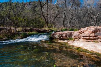 Keywords: arizona coconino national forest coconinonationalforest forest service forestservice fossil creek fossilcreek fossil springs fossilsprings fossil springs wilderness fossilspringswilderness national forest nationalforest red rock ranger district redrockrangerdistrict tonto national forest tontonationalforest backpacking canyon desert forest hiking outdoors spring springtime trail wilderness strawberry united states unitedstates Fossil Springs begin approximately three quarters of a mile above the old Fossil Creek Dam. A series of springs gush 20,000 gallons a minute year-round at the bottom of a 1,600 foot deep canyon, creating a lush riparian oasis rich with life, and feeding Fossil Creek Wild and Scenic River. Over the years these calcium laden waters have laid down huge deposits of a type of limestone called travertine, creating deep pools for miles along the creek. The Wilderness and surrounding area are on the Tonto and Coconino National Forests, and are managed by the Coconino National Forest. During the spring-summer season, camping is prohibited in Fossil Springs Wilderness and the surrounding area, and a reserved parking permit is required to park at the trailheads that access the Wilderness. See Fossil Springs Wilderness and Fossil Creek on the USFS Coconino National Forest website for maps, regulations, permit reservations, and other details. Photo by Deborah Lee Soltesz. Source: USFS Coconino National Forest. Fossil Springs begin approximately three quarters of a mile above the old Fossil Creek Dam. A series of springs gush 20,000 gallons a minute year-round at the bottom of a 1,600 foot deep canyon, creating a lush riparian oasis rich with life, and feeding Fossil Creek Wild and Scenic River. Over the years these calcium laden waters have laid down huge deposits of a type of limestone called travertine, creating deep pools for miles along the creek. The Wilderness and surrounding area are on the Tonto and Coconino National Forests, and are managed by the Coconino National Forest. During the spring-summer season, camping is prohibited in Fossil Springs Wilderness and the surrounding area, and a reserved parking permit is required to park at the trailheads that access the Wilderness. See Fossil Springs Wilderness and Fossil Creek on the USFS Coconino National Forest website for maps, regulations, permit reservations, and other details. Photo by Deborah Lee Soltesz. Source: USFS Coconino National Forest.